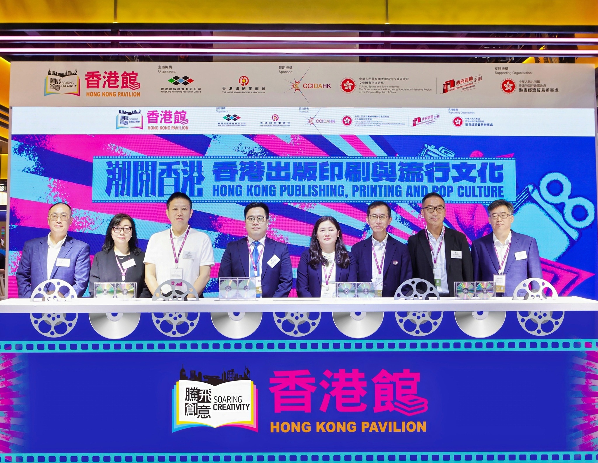 由香港出版總會及香港印刷業商會合辦、文創產業發展處資助的「騰飛創意—香港館」項目於8月15日至19日再度參與南國書香節,並邀得香港特別行政區政府駐粵經濟貿易辦事處擔任南國書香節「香港館」的支持機構。 「香港館」於8月15日舉行了開幕禮,特別邀請到香港特別行政區政府駐粵經濟貿易辦事處副主任莊港生先生、香港特別行政區政府文創產業發展處總監(建築、印刷出版及推廣)戚芷筠女士、南方傳媒副總經理、廣東省新華發行集團董事長蔣鳴濤先生、香港出版總會會長李家駒博士、「騰飛創意—香港館」項目籌委會主席陳儉雯女士及副主席任澤明先生、2025 南國書香節「香港館」暨大灣區書店閱讀交流平台主席蘇惠良先生、中華商務貿易有限公司董事長王凱先生蒞臨主禮。? 蘇惠良主席在致辭中闡述今年南國書香節「香港館」的主題——「潮閱香港——香港出版印刷與流行文化」,不僅全面展示了香港出版印刷業的卓越成就,更彰顯了香港作為大灣區文化交流樞紐的重要角色。面對諸多挑戰,香港出版印刷業界依然堅持以創新精神推出一系列高質量出版和印刷作品,持續推動香港文化的傳承與發展。 開幕禮期間,「香港館」舉行了贈書儀式,由籌委會主席陳儉雯女士與副主席任澤明先生共同主持,廣州國家版本館分館代表接受。此外,兩項由文創產業發展處資助的項目亦為其作品同場舉行了備受矚目的廣州首發儀式——分別是「香港繪本出版支援計劃」的《飛躍繪本》系列,以及第三屆「想創你未來—初創作家出版資助計劃」的獲資助作品,後者的其中兩本獲資助作品更舉行了簡體版授權簽約儀式。大會亦介紹了即將推出的大灣區書店閱讀交流平台,為本次盛事增添亮點。 「騰飛創意—香港館」致力於匯聚香港出版印刷業的智慧與創意能量,構築了跨地域文化交流的新橋樑,使更多同業及讀者感受到了香港出版印刷業的獨特魅力與豐厚底蘊。此次「香港館」吸引了各界高度關注與踴躍參與,見證了這場文化盛會,領略了香港出版印刷創意的無限風采。