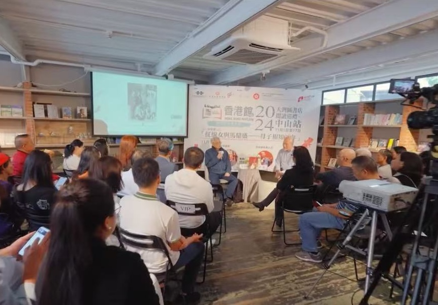 - 為推廣本港優質與創新的文創產業,由香港出版總會及香港印刷業商會合辦,文創產業發展處資助的「騰飛創意-線上線下香港館」項目(下稱「騰飛創意」項目),今年首辦「大灣區書店閱讀巡禮」(下稱「巡禮」),早前順利完成澳門站和中山站後,今天(15日)到明年1月5日在佛山古鎮新華悅讀空間舉行佛山站,展銷約1800本香港精選圖書,是跨年至2025年的印刷與出版業界粵港澳大灣區的文化交流盛事。 巡禮佛山站舉行了一場以弘揚中華武術為特色的專題分享會,由著名收藏家及作家吳貴龍先生以「龍影香江——李小龍的傳奇」為演講主題,回顧一代國際武打巨星李小龍的輝煌傳奇。除了細述李小龍的精彩故事,吳貴龍先生更為現場觀眾準備了李小龍主題年曆作為一份特別的新年禮物。