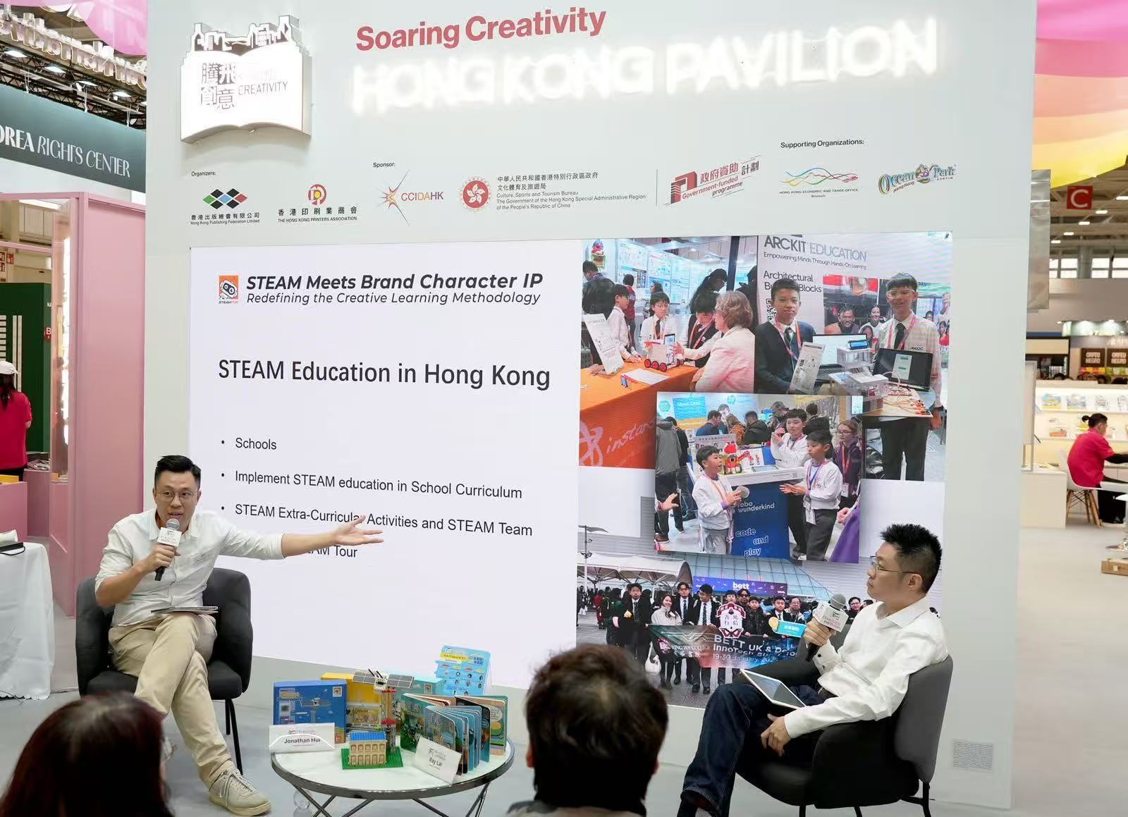 - STEAMFUN—科創樂聯合創辦人賴明仁和許偉樂以「STEAM遇上品牌角色IP:重新定義創科教育的創意學習方式」為主題,分享了STEAM教育(Science, Technology, Engineering, Arts, Mathematics)和品牌角色IP(Intellectual Property)的結合,在重新定義創科教育的創意學習方式方面呈現突破優勢。憑藉著遊戲化學習和IP角色互動式教學、可持續學習和全球化視野、跨界合作和產業對接、社群合作和分享這些趨勢,共同推動著STEAM教育與品牌角色IP結合的創意學習方式不斷發展和演進,為學生提供更豐富多元的學習體驗和機會,促進其創造力和創新能力的培養和發展。在重新定義創科教育的創意學習方式方面呈現突破優勢,現場吸引了眾多參觀者關注。