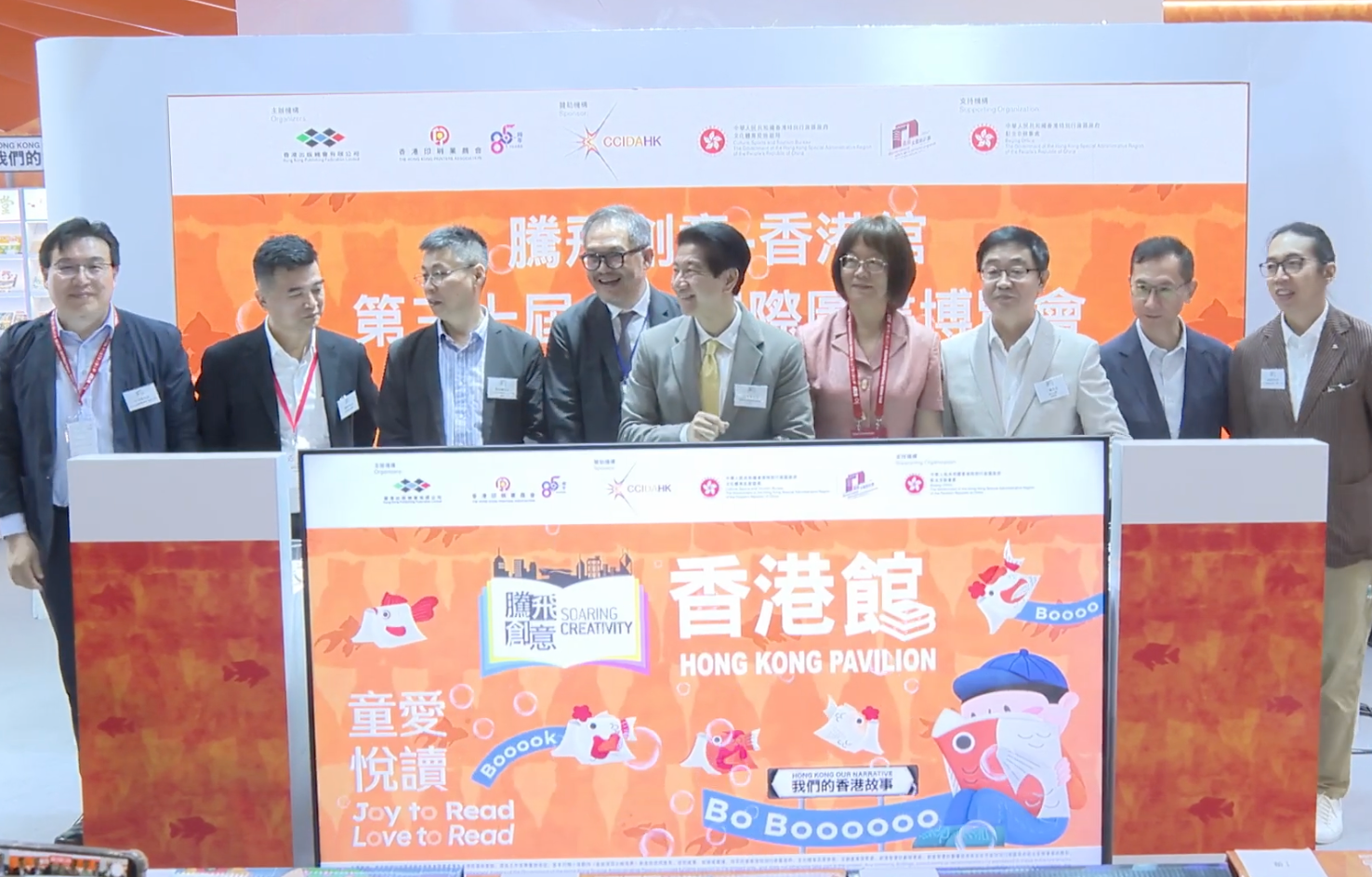 - 2024 北京国际图书博览会「腾飞创意 - 香港馆」日前正式揭幕!为隆重其事,大会举行了揭幕酒会,邀请一众主礼嘉宾举杯同庆。 「腾飞创意 - 香港馆」揭幕式上,很荣幸邀请到多位嘉宾主礼,包括:香港特别行政区政府驻北京办事处主任郑伟源先生、文创产业发展处文创产业专员曾昭学先生、中宣部进出口管理局一级巡视员王华女士、中央人民政府驻香港联络办公室宣传文体部副部长孙兆敏先生、紫荆文化集团副总经理丁伟先生、香港出版总会名誉会长傅伟中先生等等,与主办机构一众代表: 香港出版总会会长李家驹先生、「2024年北京国际图书博览会—香港馆」主席于克凌先生、「2024北京国际图书博览会—香港馆」副主席吕振邦先生一同为「香港馆」揭开序幕,场面热闹! 于克凌主席在开幕致辞时特别感谢文创产业发展处(前称「创意香港」)对「腾飞创意」项目的长期赞助及肯定,并向各香港参展商表达了由衷的谢意。他表示北京国际图书博览会作为内地最具国际影响力的书展平台,参展商来自五湖四海。期望透过今次「香港馆」向内地同业全面展示近年香港印刷出版业的卓越成就,展现香港业界对发展内地市场的决心,推广香港文化以及发展华北地区「香港出版及印刷业品牌」的集体形象。