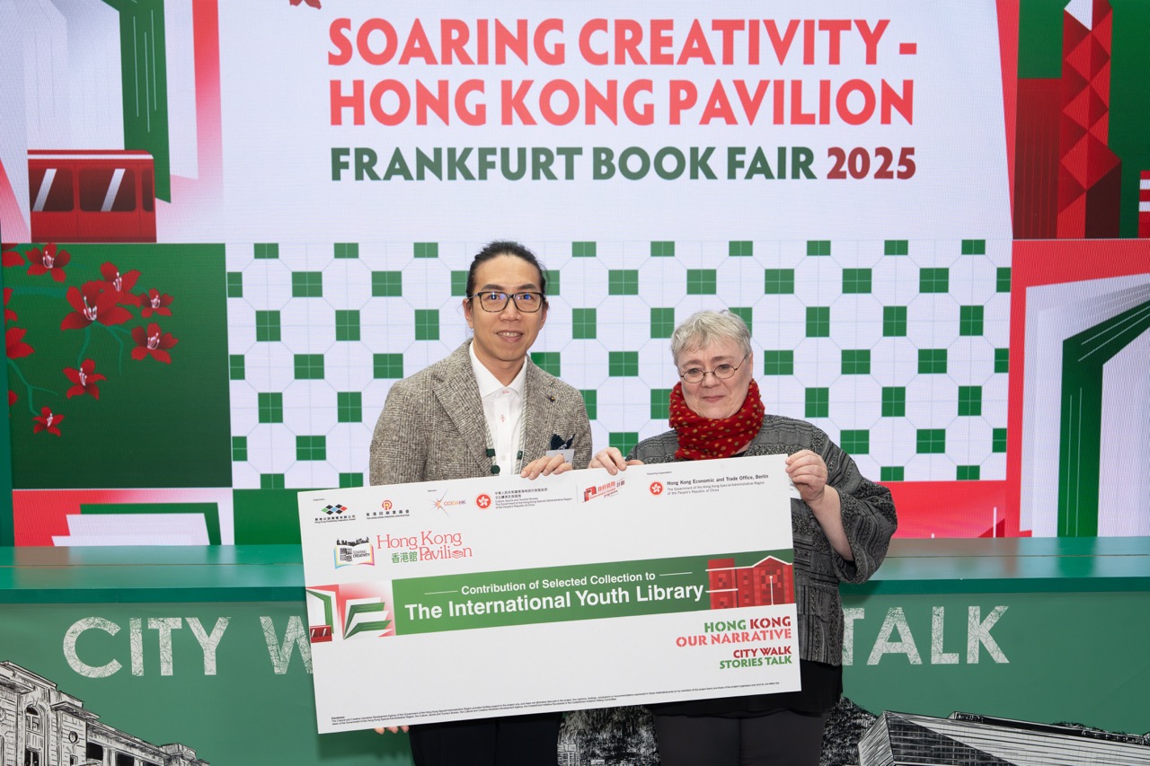 - 为了推动香港优秀及具创意的出版物及印刷品「走向世界」,借此展现香港的文化创意实力,由香港出版总会和香港印刷业商会主办、文创产业发展处资助的「腾飞创意—线上线下香港馆」项目(下称「腾飞创意」项目),今年在香港驻柏林经济贸易办事处的支持下,再度参与年度大型国际书展盛事——法兰克福书展,以「我们的香港故事」为主题,「慢行城市,细读故事」为副题,为全球印刷及出版同业带来富有特色的「香港馆」,通过展示超过一千件具创意及优质的香港出版物及印刷品,展现香港独特的城市魅力。